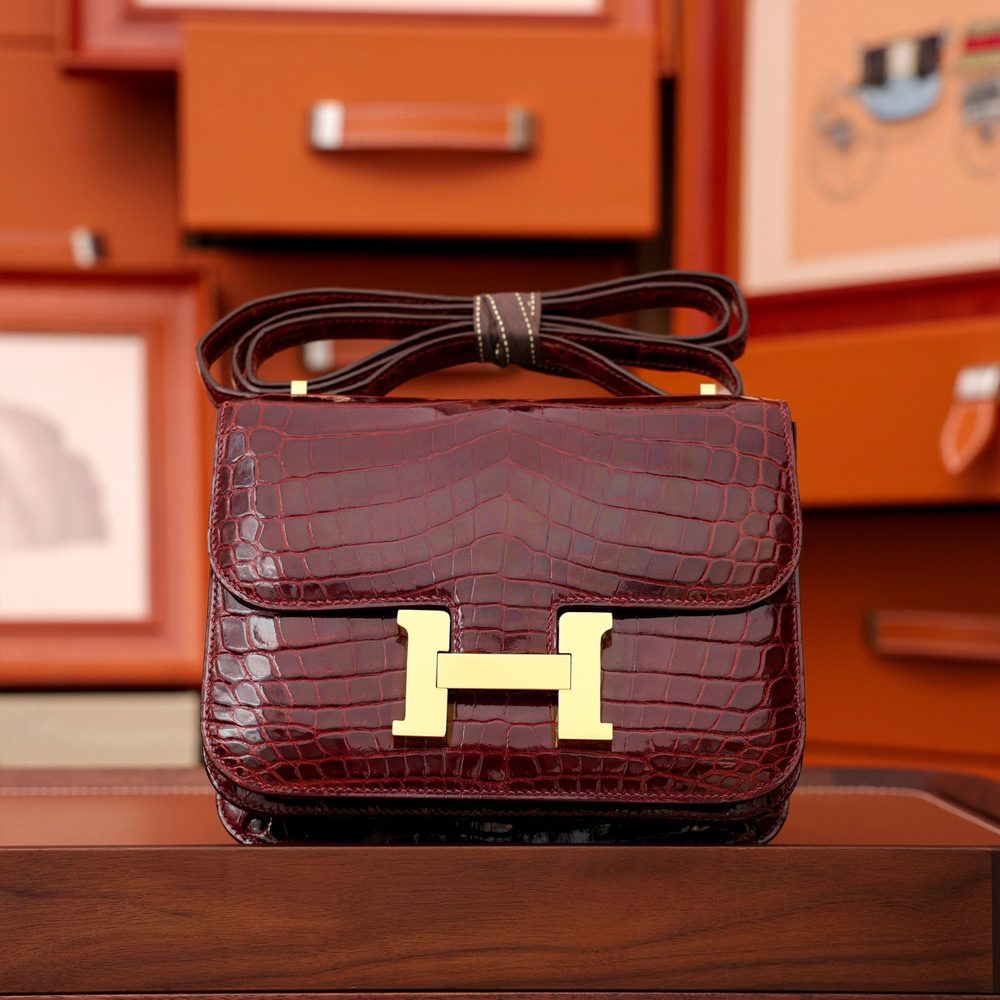 에르메스 올수공 엘리게이터 콘스탄스 18 버건디 골드 하드웨어