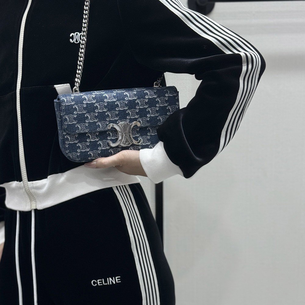 셀린느 트리오페 데님 클로드 체인 숄더백 데님실버