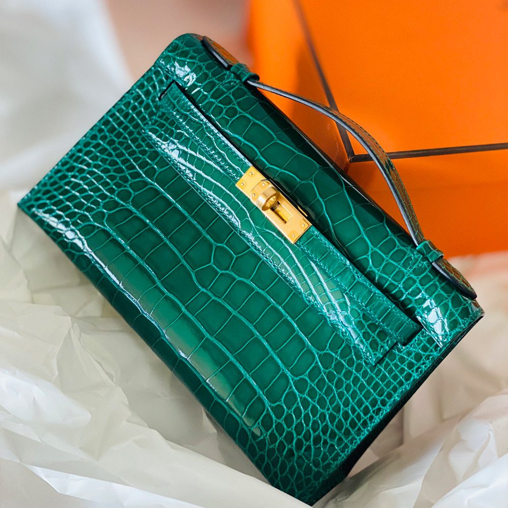 에르메스 올수공 미니 켈리 엘리게이터 그린 골드 하드웨어