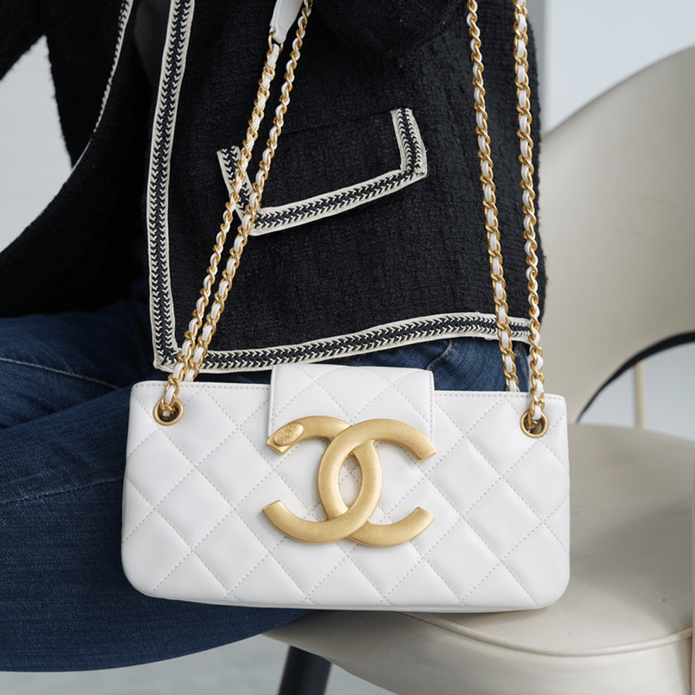 팬더샵 샤넬 24C 크루즈 메신저 백 라지 빅로고 화이트