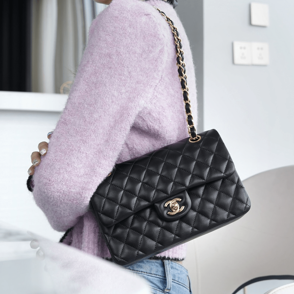 팬더샵 샤넬 클래식 플랩백 스몰 블랙 금장 램스킨