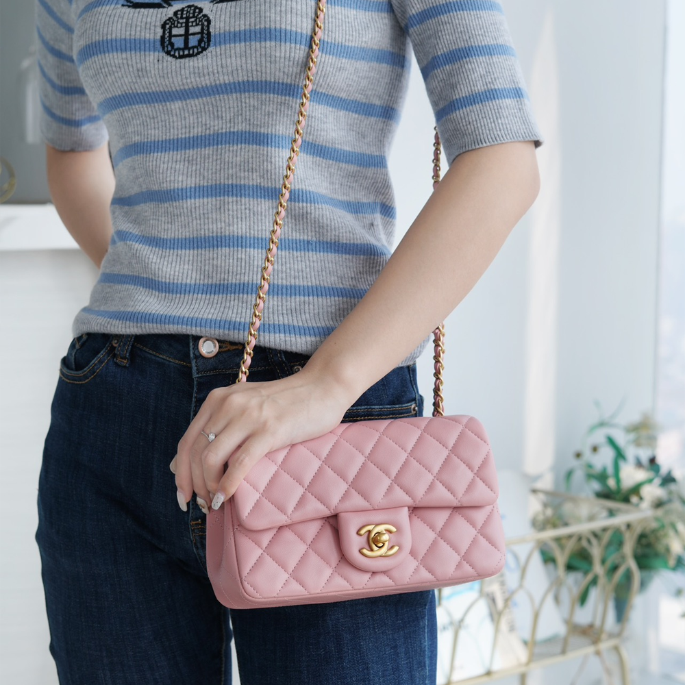 팬더샵 샤넬 클래식 메탈볼 플랩백 핑크 금장 램스킨