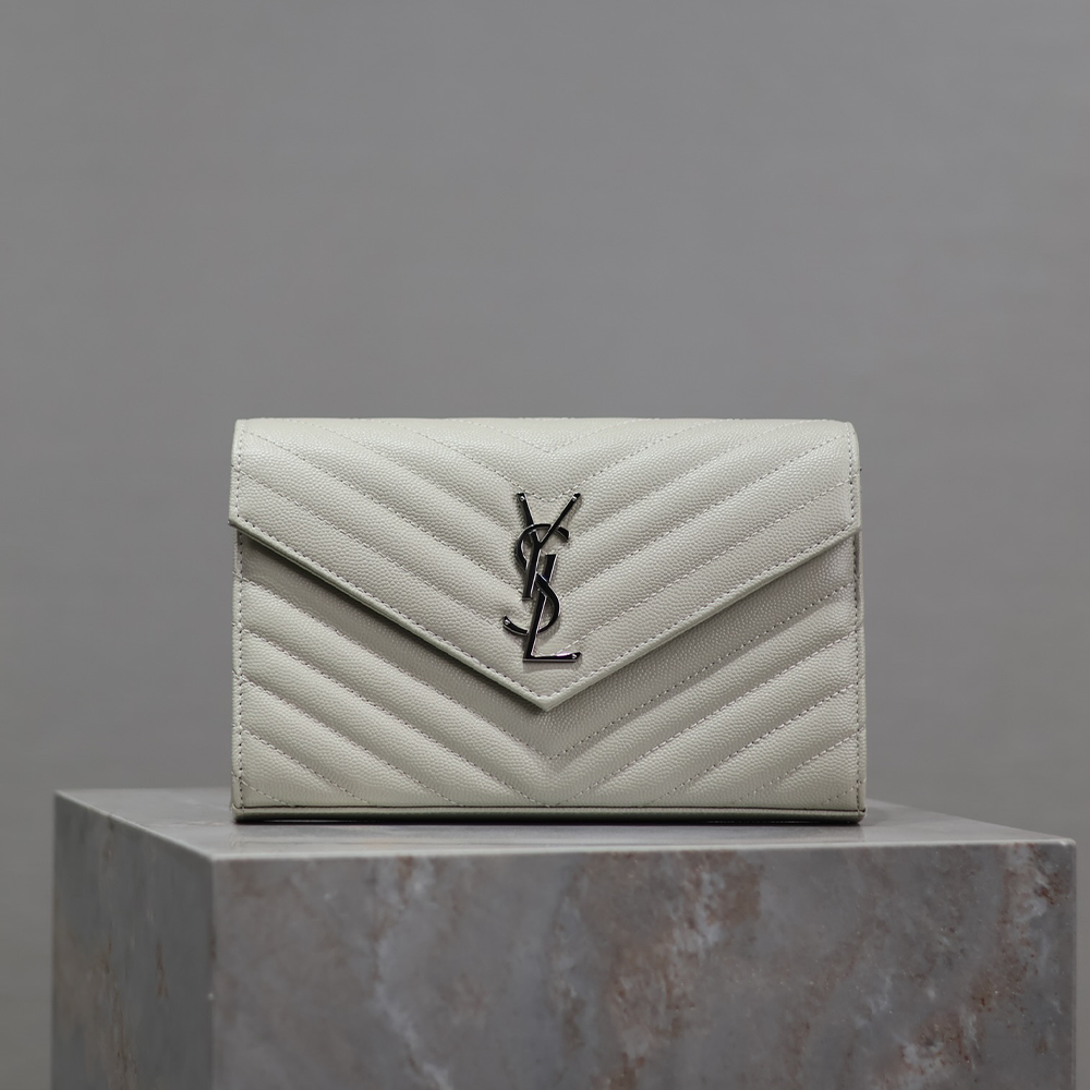 생로랑 여성 마틀라세 모노그램 체인 지갑 화이트 377828