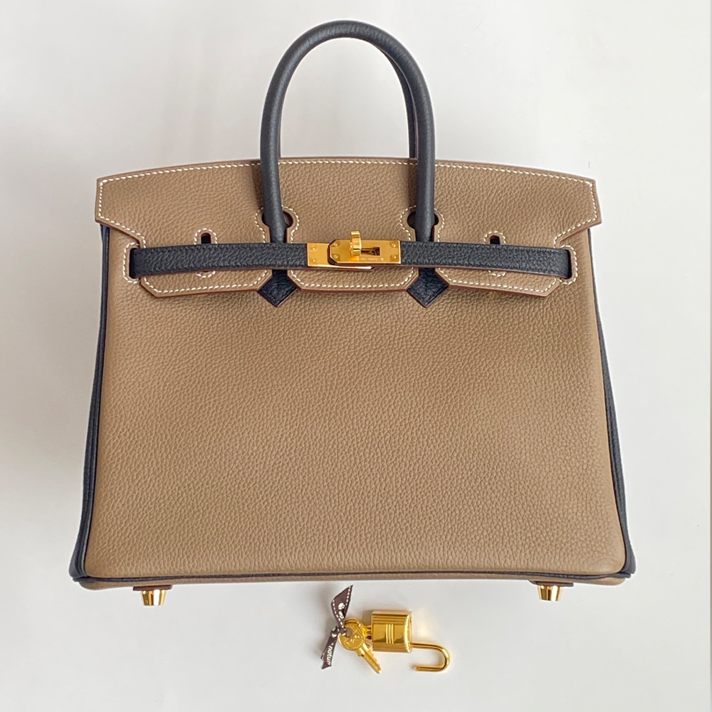 에르메스 올수공 버킨 25 투톤 브라운/네이비 스페셜 오더 쉐브르 가죽