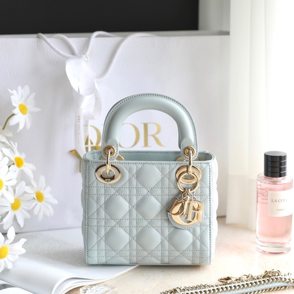 디올 레이디 미니백 화이트 스카이 블루