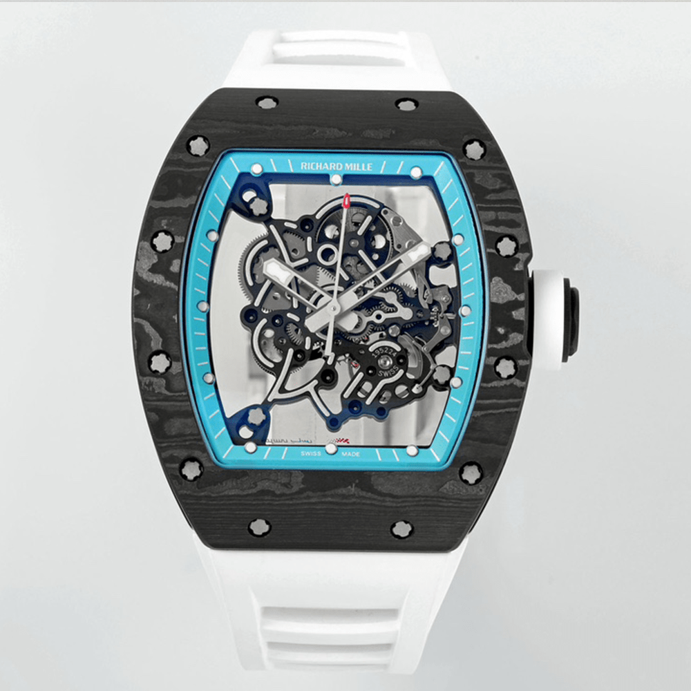 리처드 밀 RM055 NTPT ZF 1:1 베스트 에디션 블루 베젤 화이트 크라운 러버 스트랩 RMUL2 슈퍼 클론