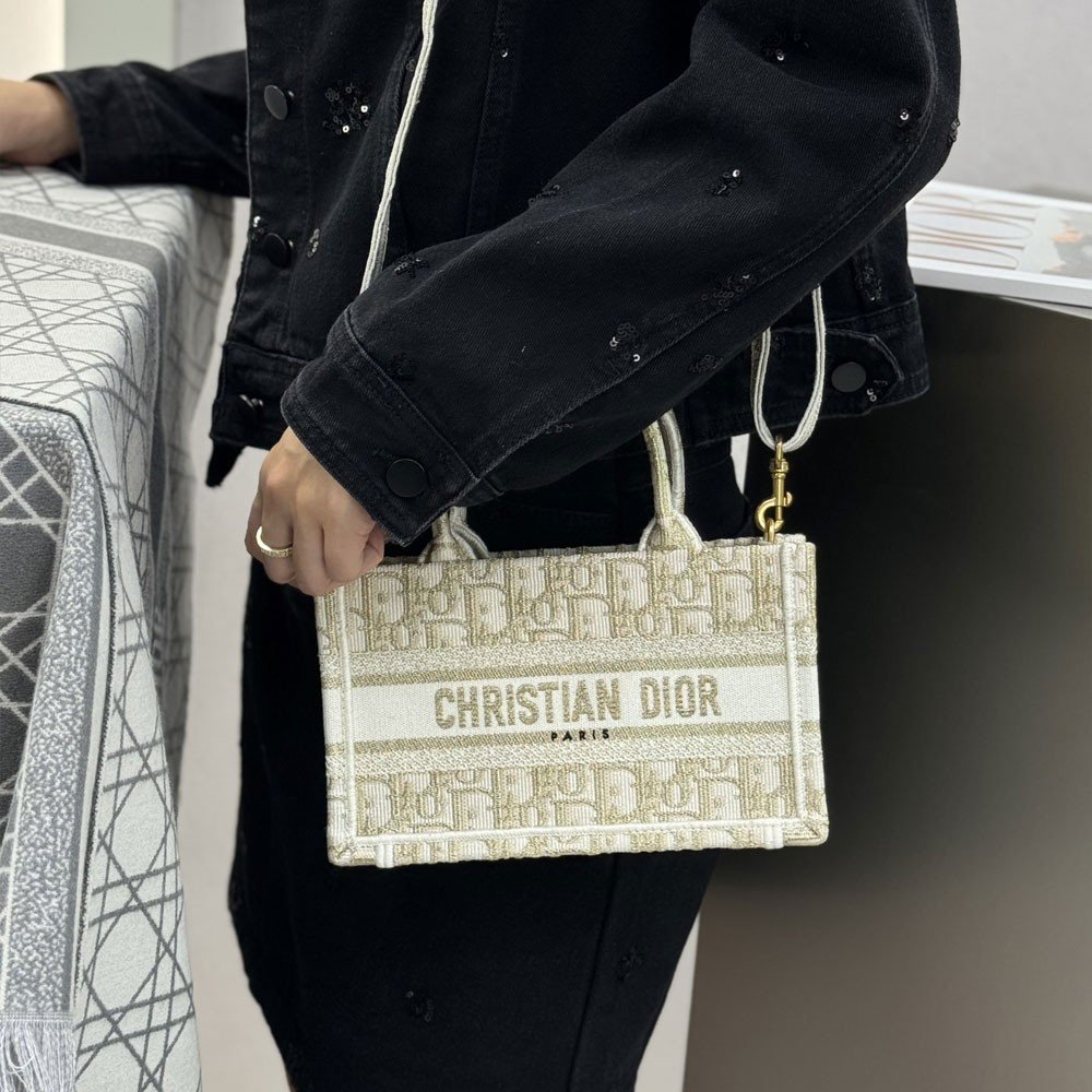 디올 북 토트 스트랩 백 미니 뜨왈 드 주이 리버스 화이트 골드