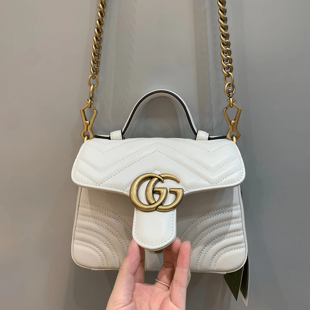 구찌 GG 마몽 미니 탑 핸들백 화이트