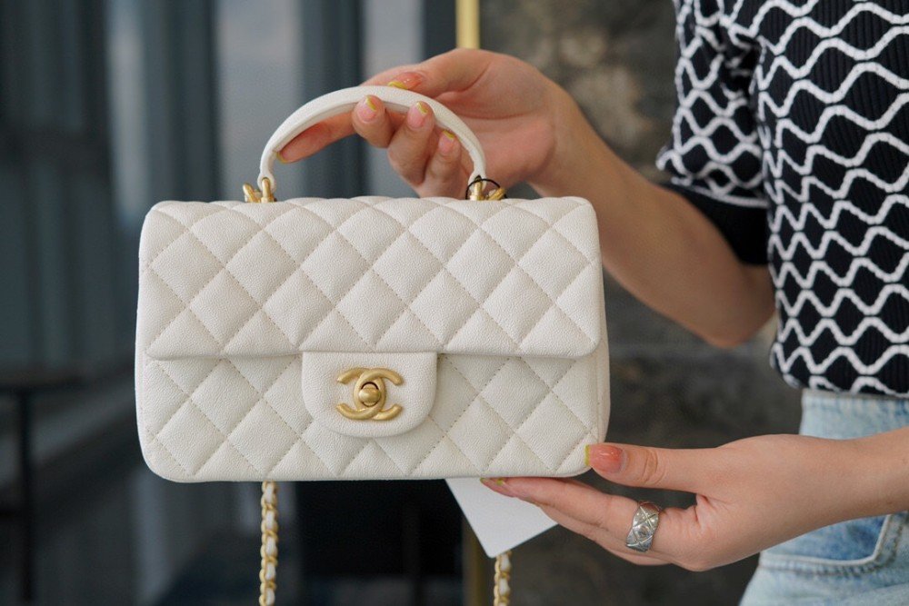팬더샵 샤넬 클래식 뉴미니 탑핸들 플랩백 화이트 캐비어