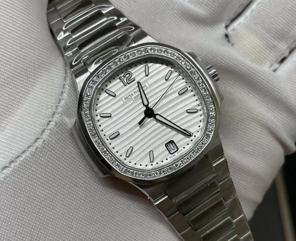 파텍필립 노틸러스 화이트 다이얼 다이아 베젤 여성용 34mm 7118