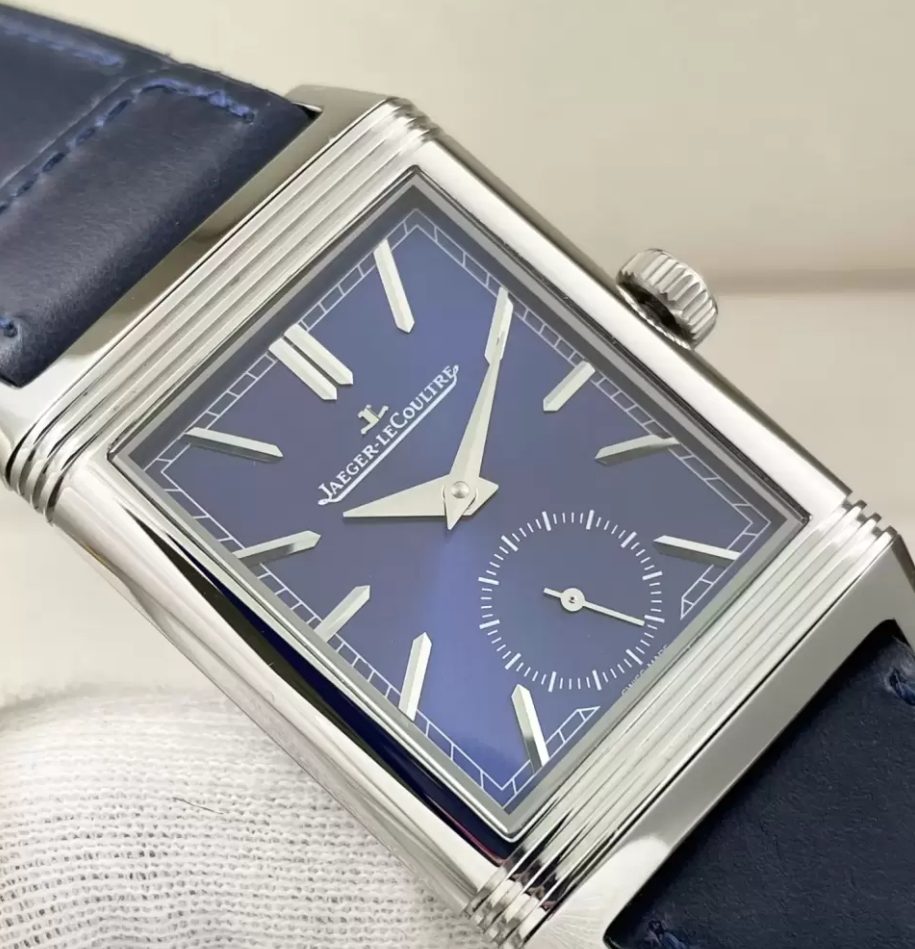 예거 르쿨트르 리베르소 클래식 라지 듀오페이스 스몰 세컨드 블루 다이얼 레더 스트랩 Q3988482