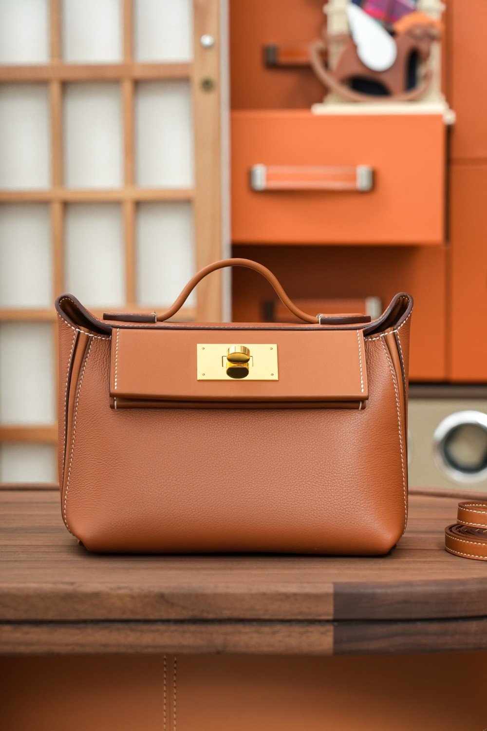 올수공 에르메스 2424 미니 백 브라운 골드 하드웨어