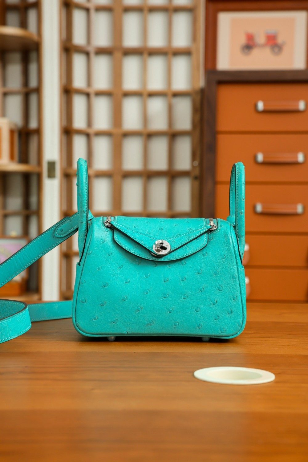 올수공 에르메스 린디백 미니 티파니 블루 타조가죽 팔라듐 하드웨어