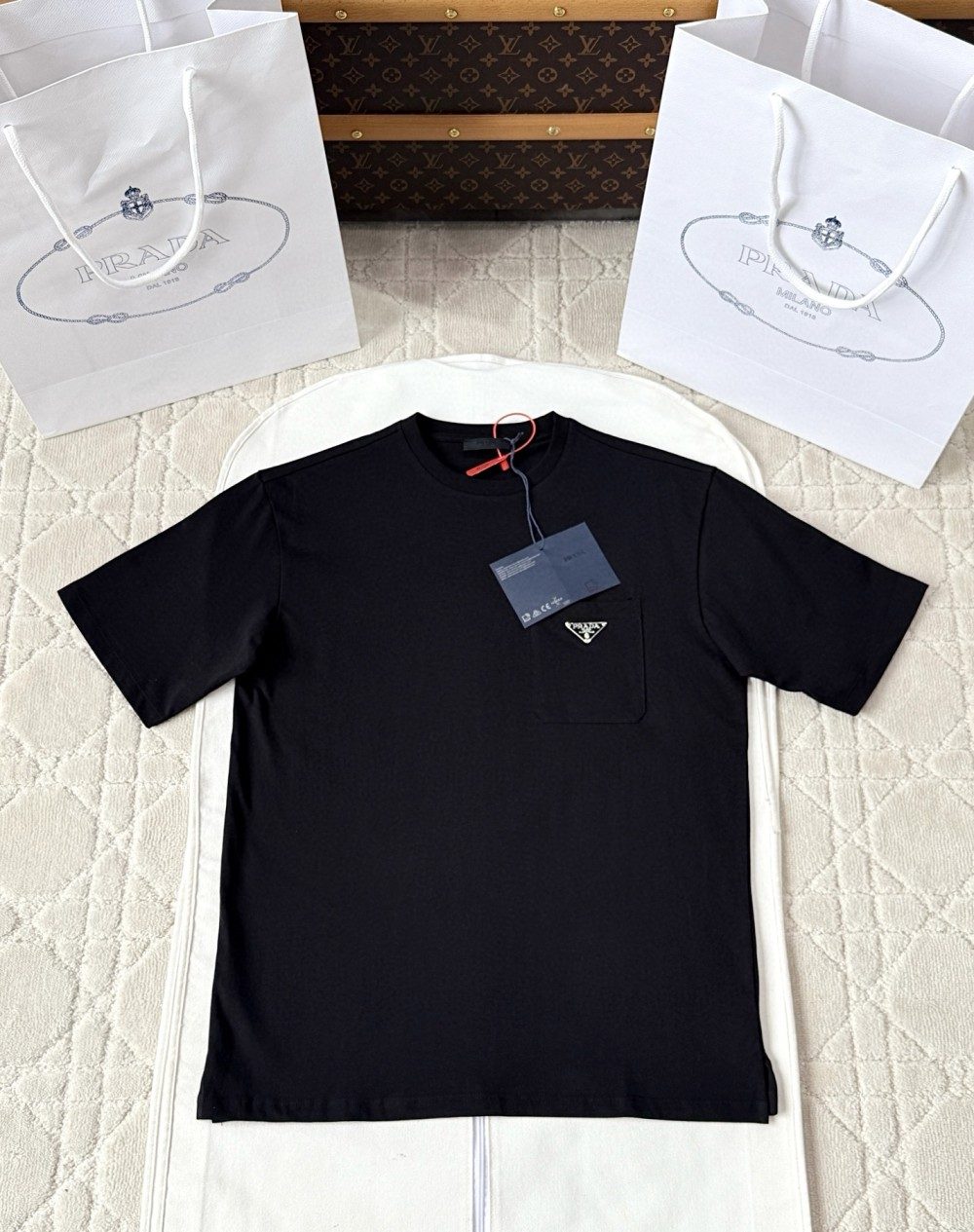 프라다 삼각 로고 포켓 반팔 티셔츠 블랙
