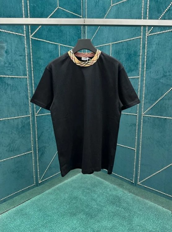 버버리 체크 트리밍 코튼 티셔츠 블랙