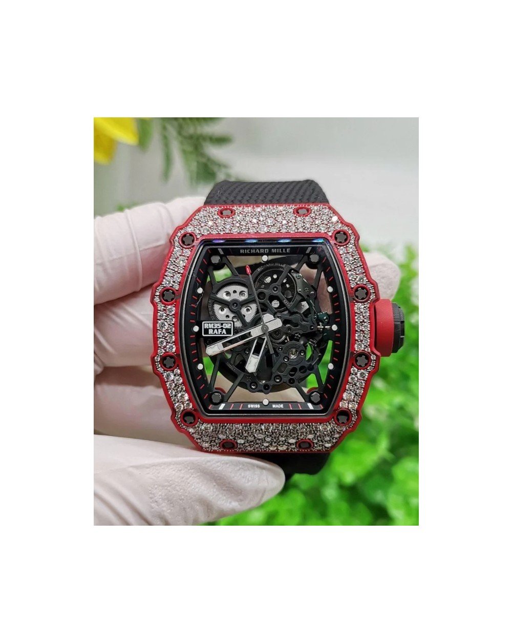 CNC 커스텀 리차드밀 라파엘 나달 레드 카본 랩 다이아 세팅 RM35-02