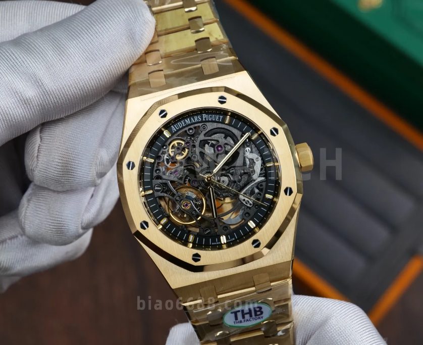 AP 로얄 오크 41mm 스켈레톤 15407 옐로우 골드 THB 팩토리 1:1 베스트 에디션 스켈레톤 다이얼, 로즈 골드 브레이슬릿 A3132 V2