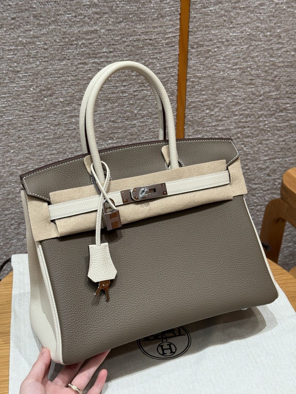 올수공 에르메스 버킨 30 Etoupe & Craie 토고 가죽 실버 하드웨어